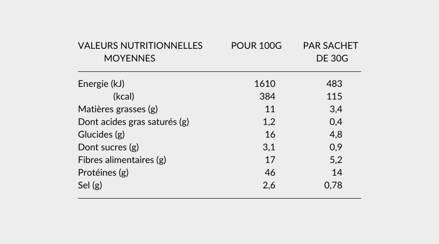 Pratiques à emporter, elles sont conditionnées en sachet individuel de 30 g, idéal pour une collation saine au bureau, après le sport ou simplement pour un moment de plaisir.